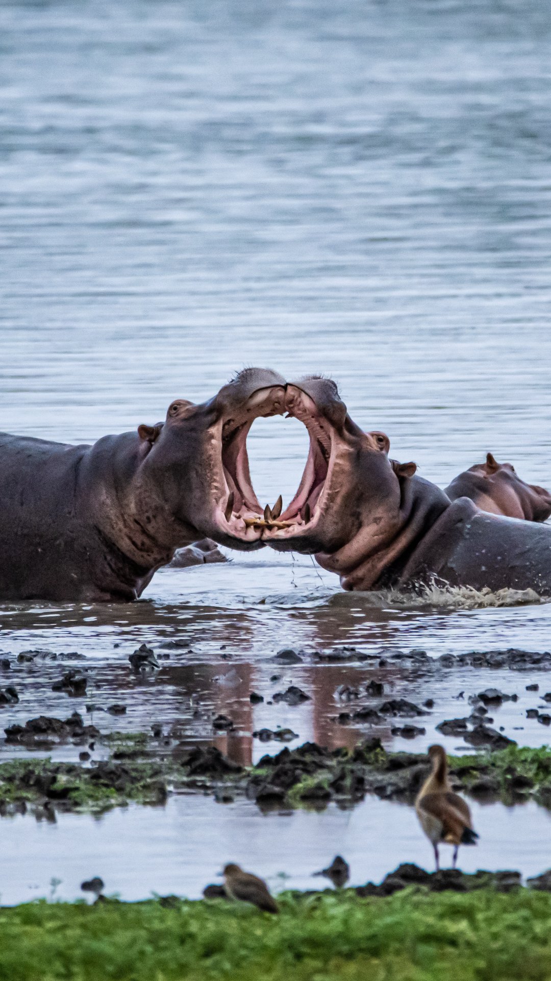 Wallpaper: Zimbabwe, hippos - 1080x1920