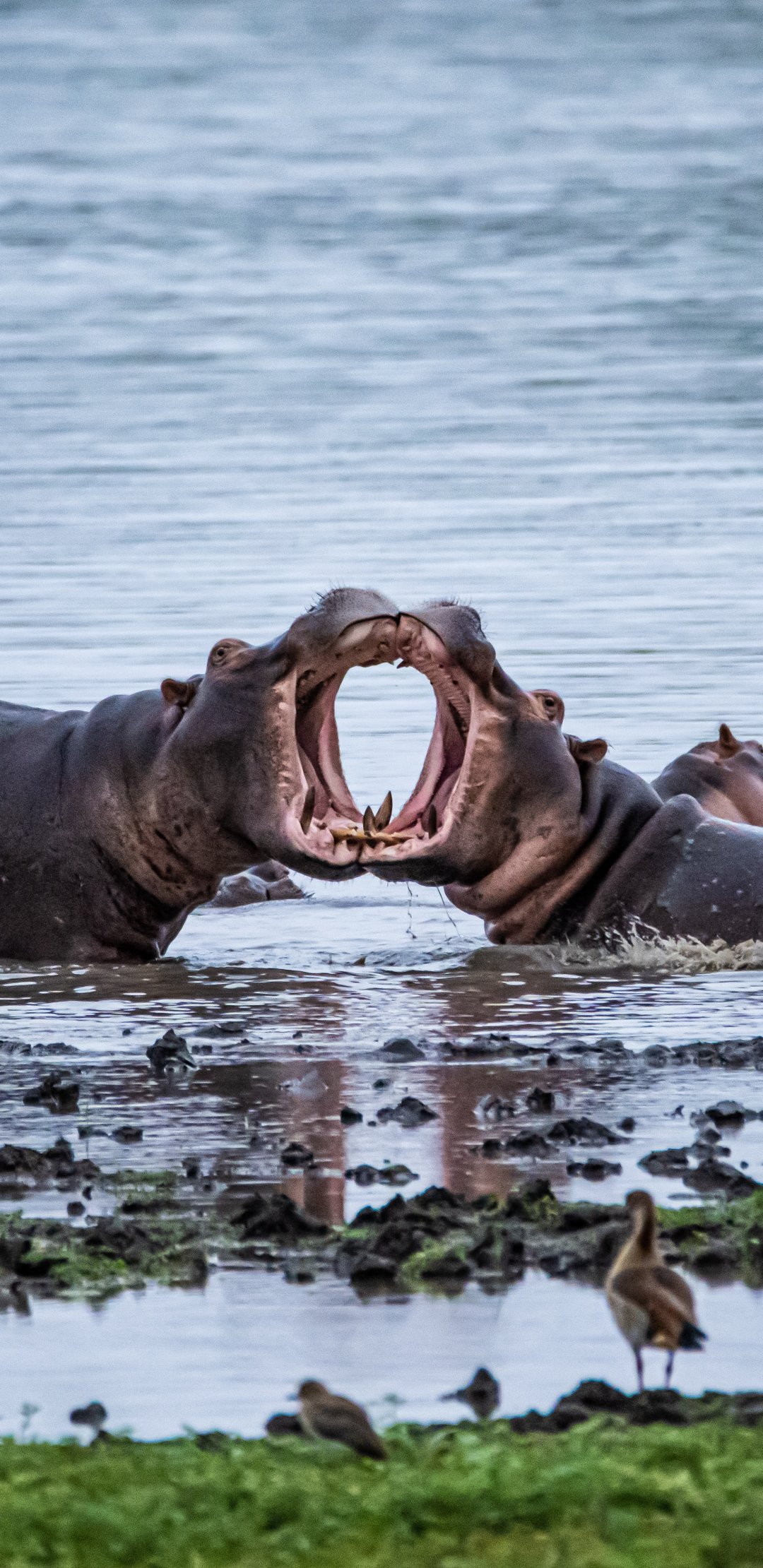 Wallpaper: Zimbabwe, hippos - 1080x2220