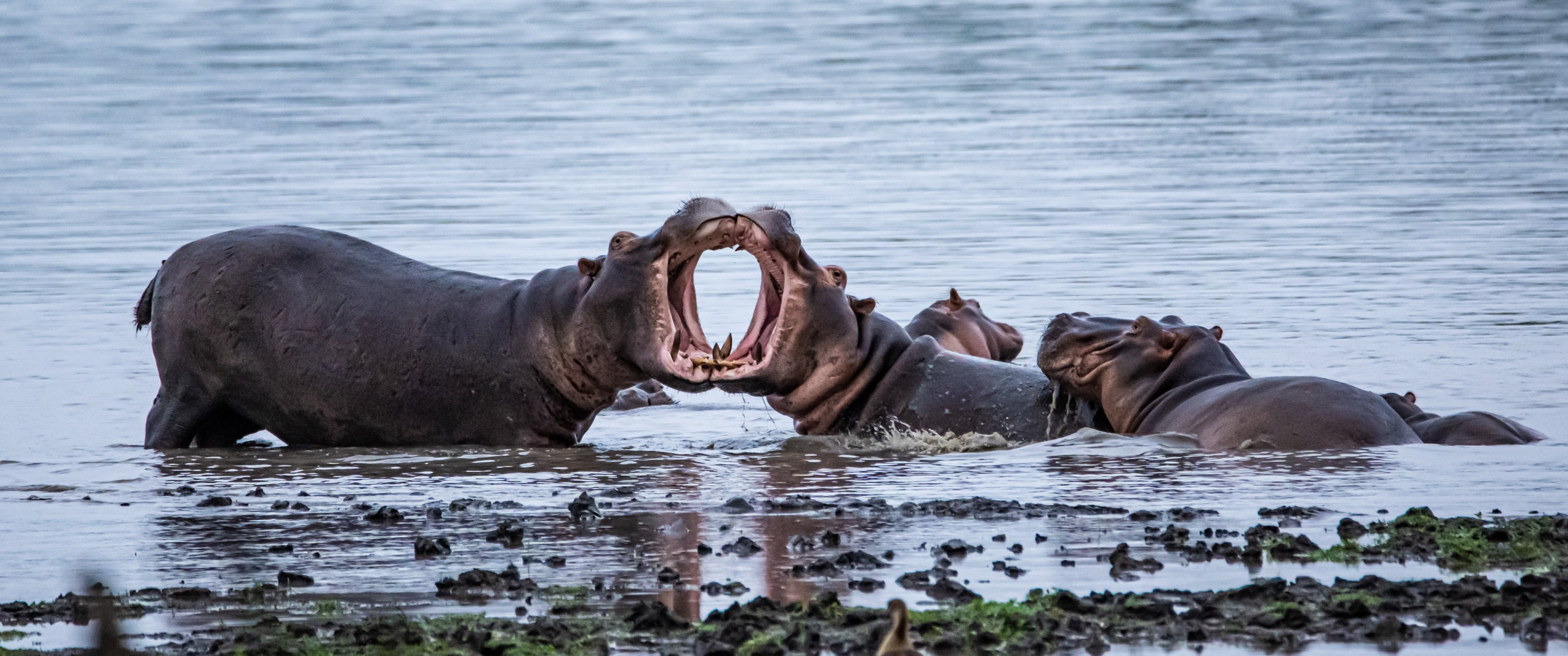 Wallpaper: Zimbabwe, hippos - 3440x1440