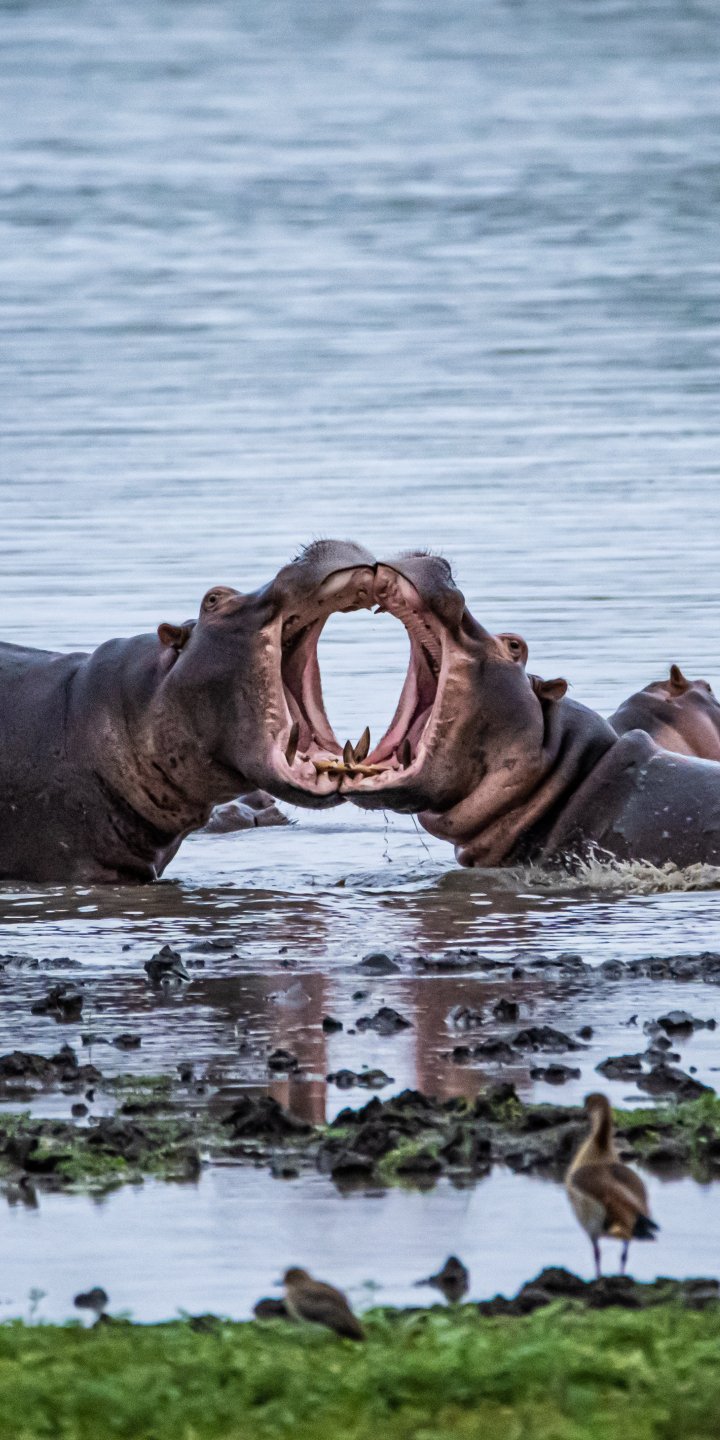Wallpaper: Zimbabwe, hippos - 720x1440