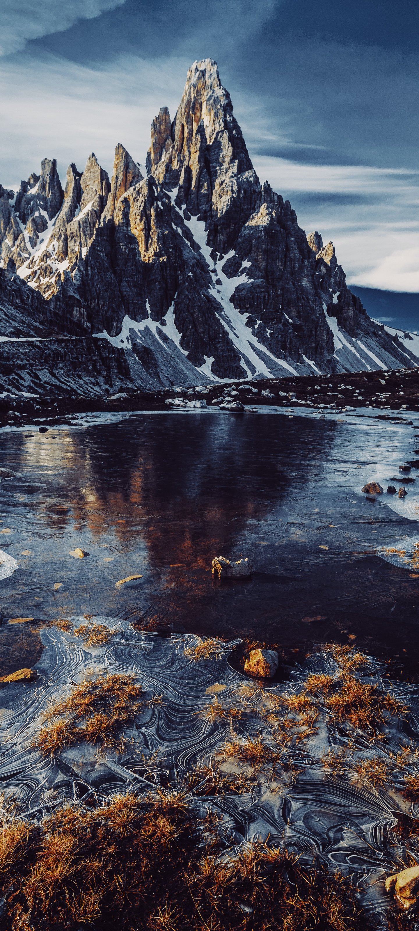 Wallpaper: mountain peaks, mountain stream - 1440x3200