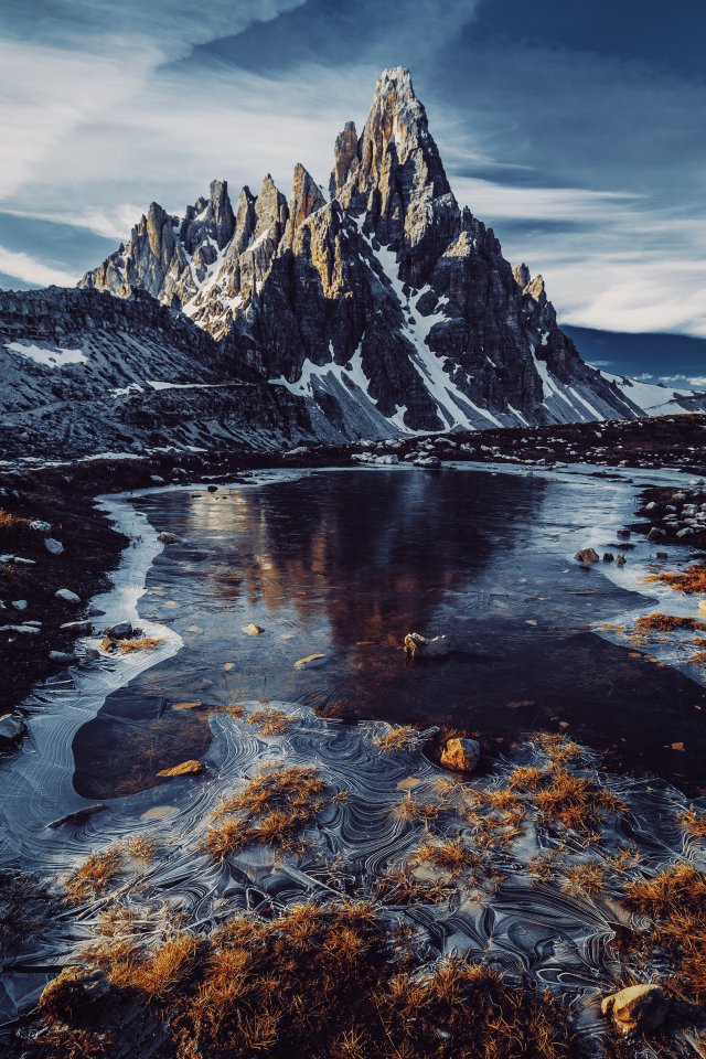 Wallpaper: mountain peaks, mountain stream - 640x960