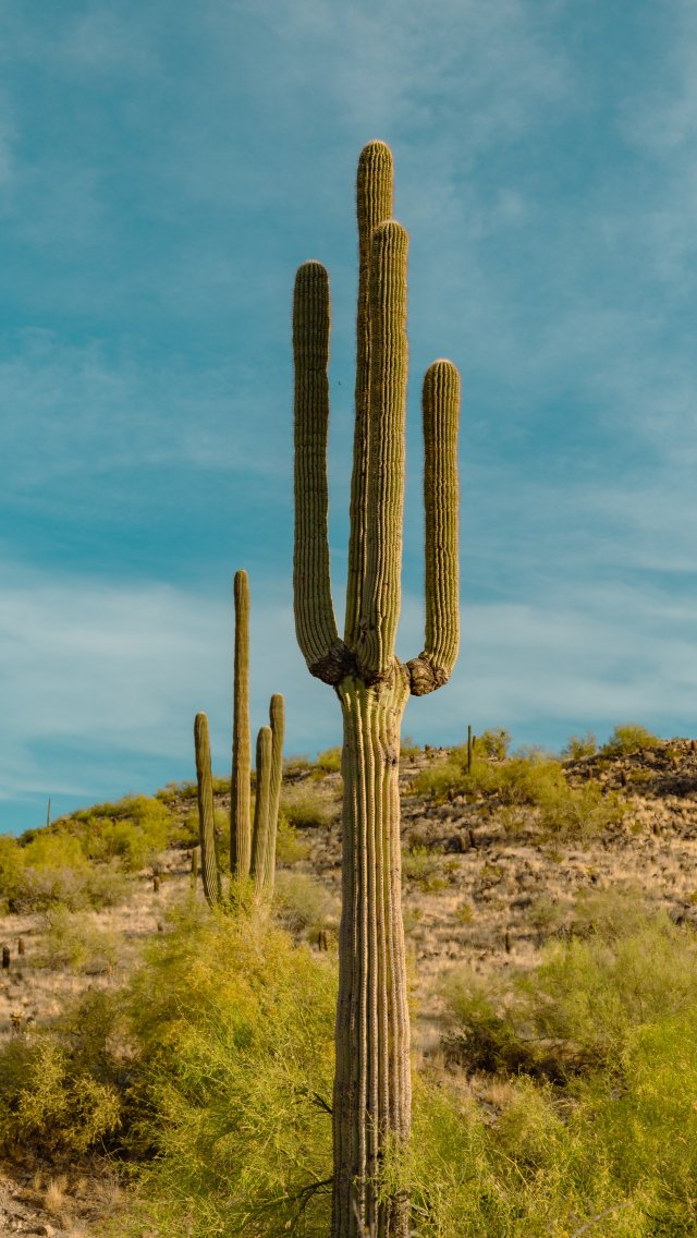 Wallpaper: big cactus, desert area - 640x1136