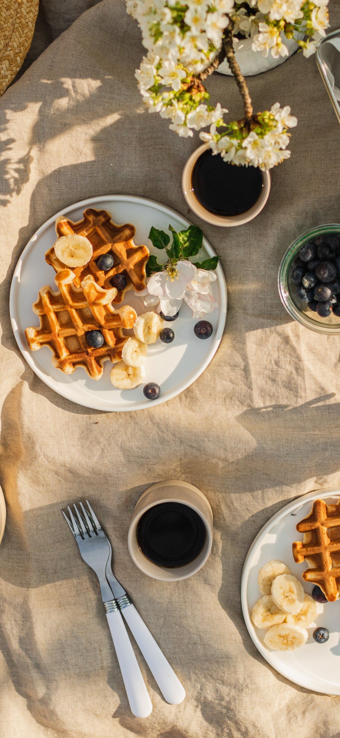 coffee, breakfast, waffles Wallpaper 1125x2436