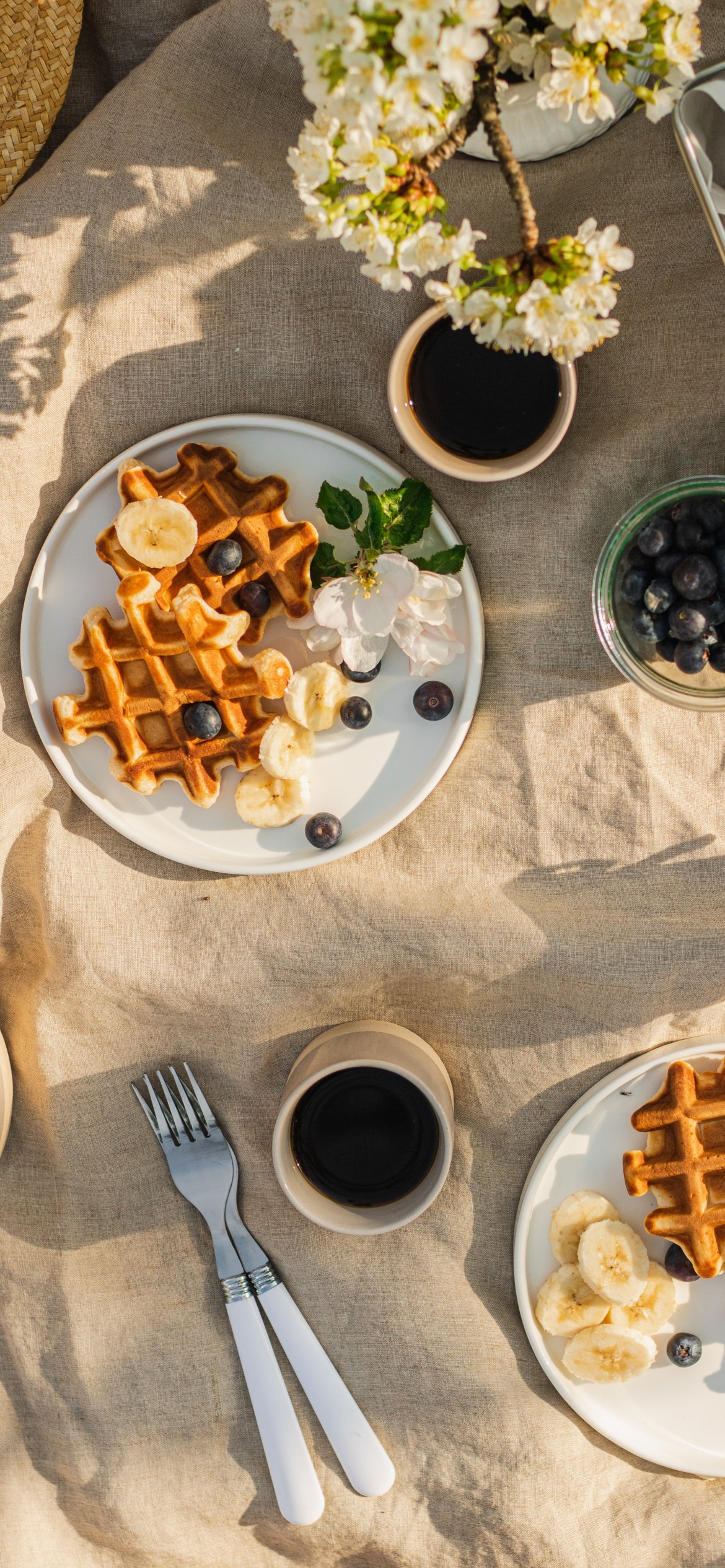 coffee, breakfast, waffles Wallpaper 1170x2532