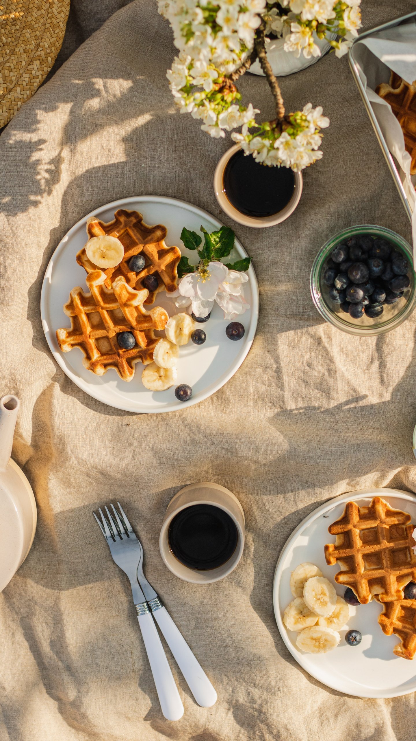 coffee, breakfast, waffles Wallpaper 1440x2560