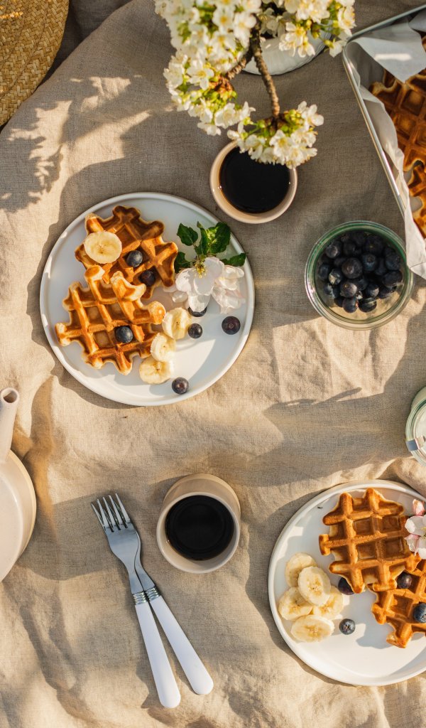 coffee, breakfast, waffles Wallpaper 600x1024