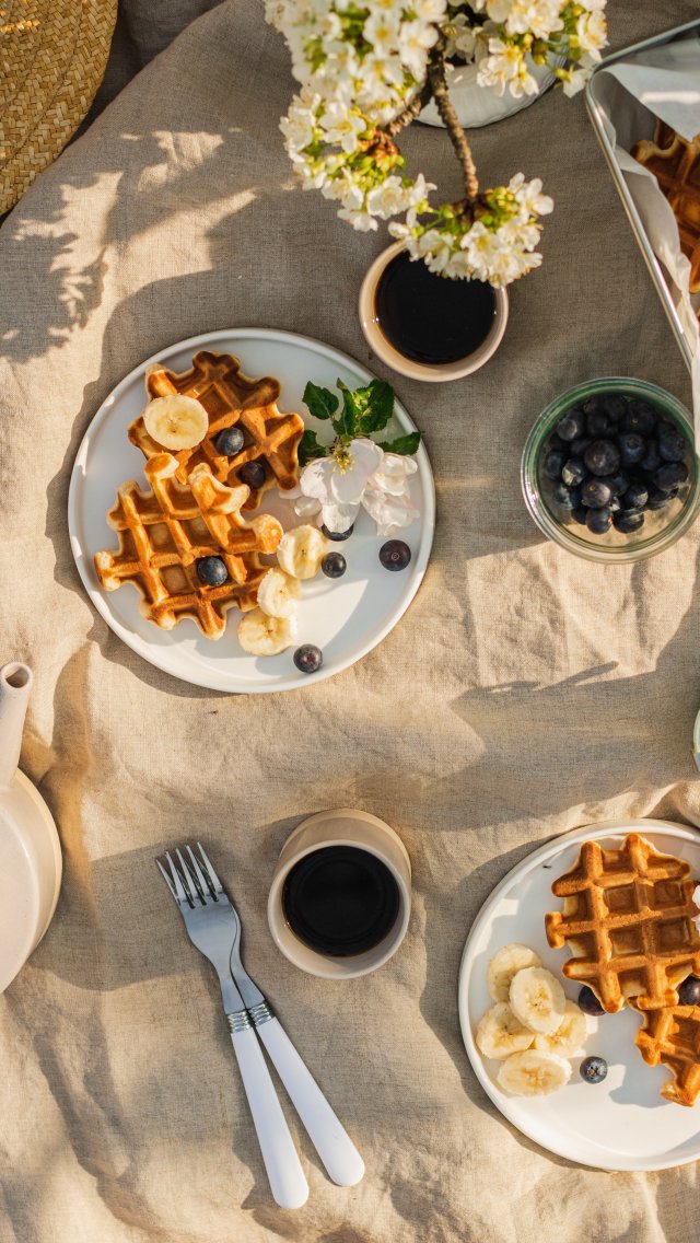coffee, breakfast, waffles Wallpaper 640x1136