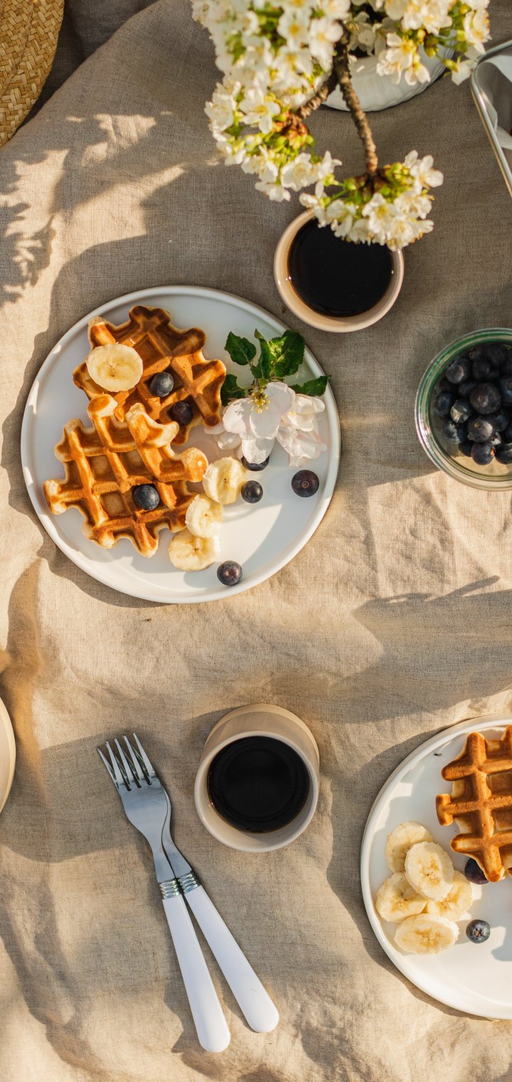coffee, breakfast, waffles Wallpaper 720x1520