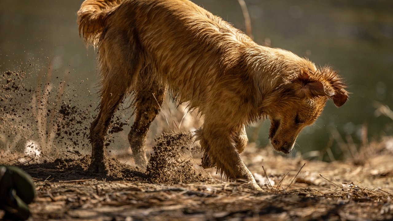 Wallpaper: red dog, dirty - 1280x720