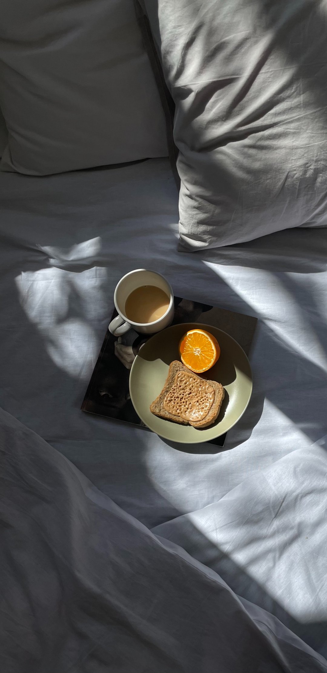 Wallpaper: white sheets, breakfast - 1080x2220