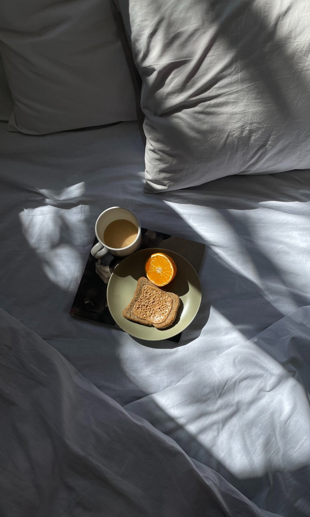 Wallpaper: white sheets, breakfast - 1200x2000