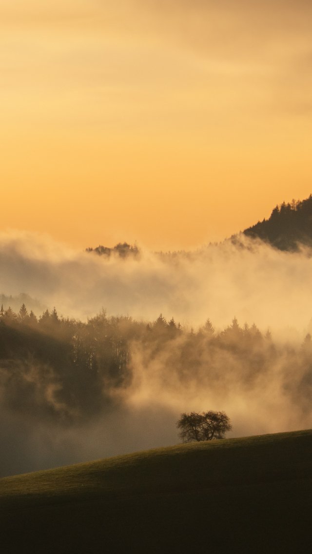 Wallpaper: dawn, valley, mist - 640x1136