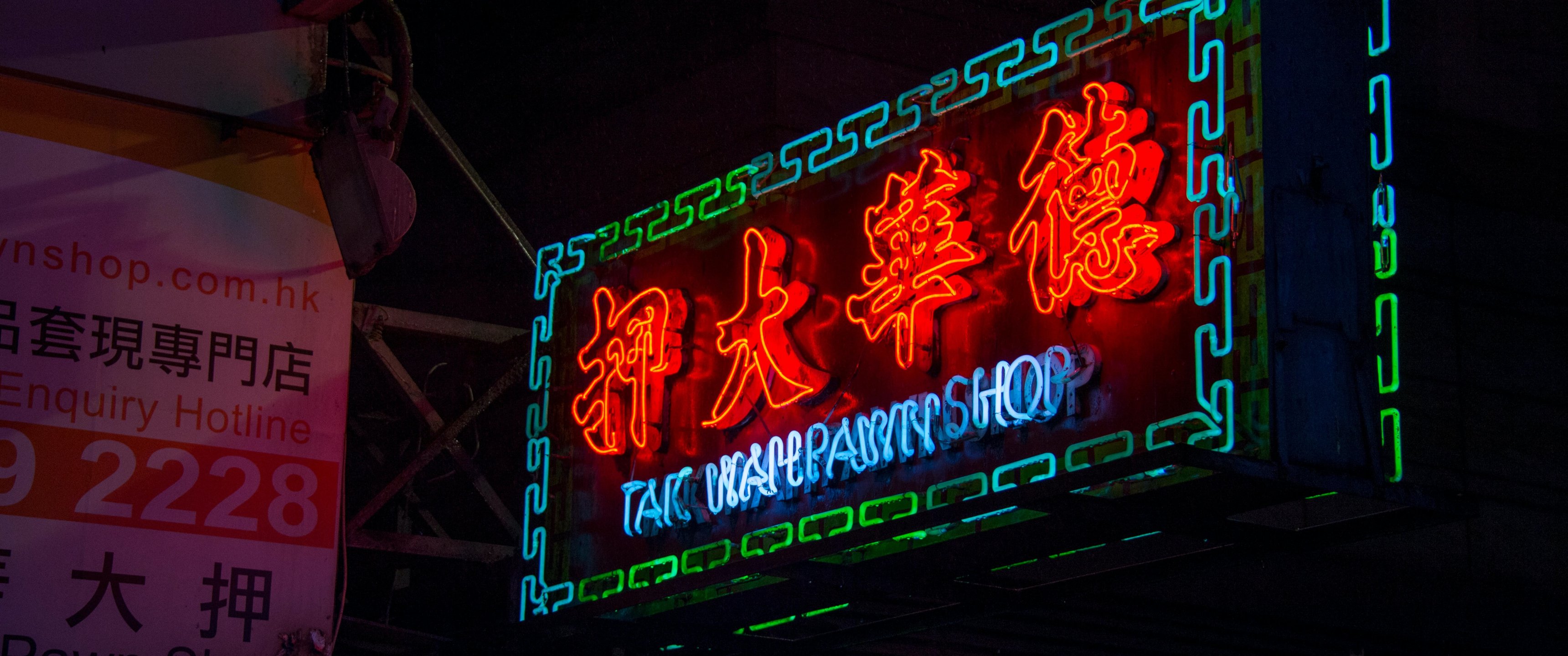 Wallpaper: Hong Kong, sign - 3440x1440