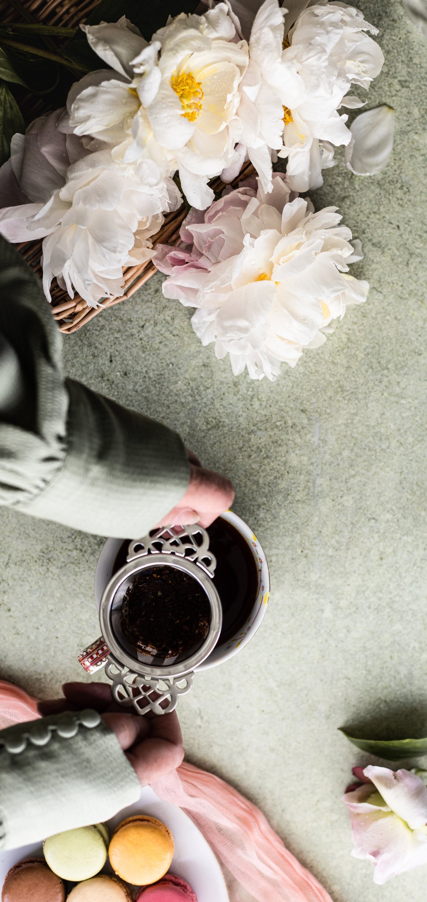 Wallpaper: flowers, mug coffee - 1440x3040