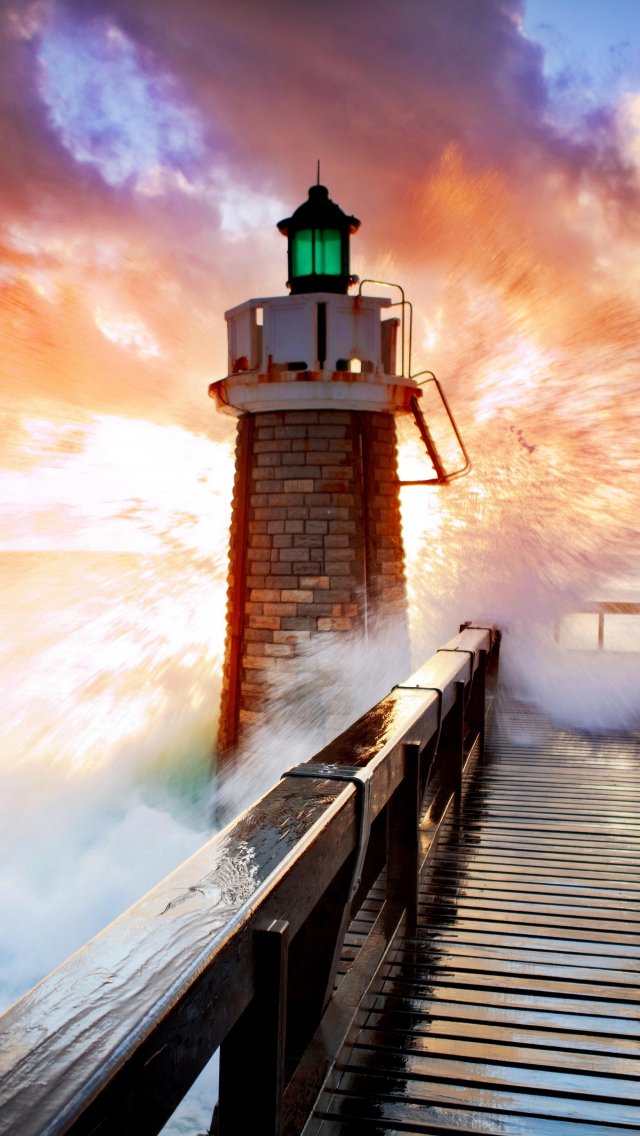 Wallpaper: lighthouse, ocean, waves - 640x1136