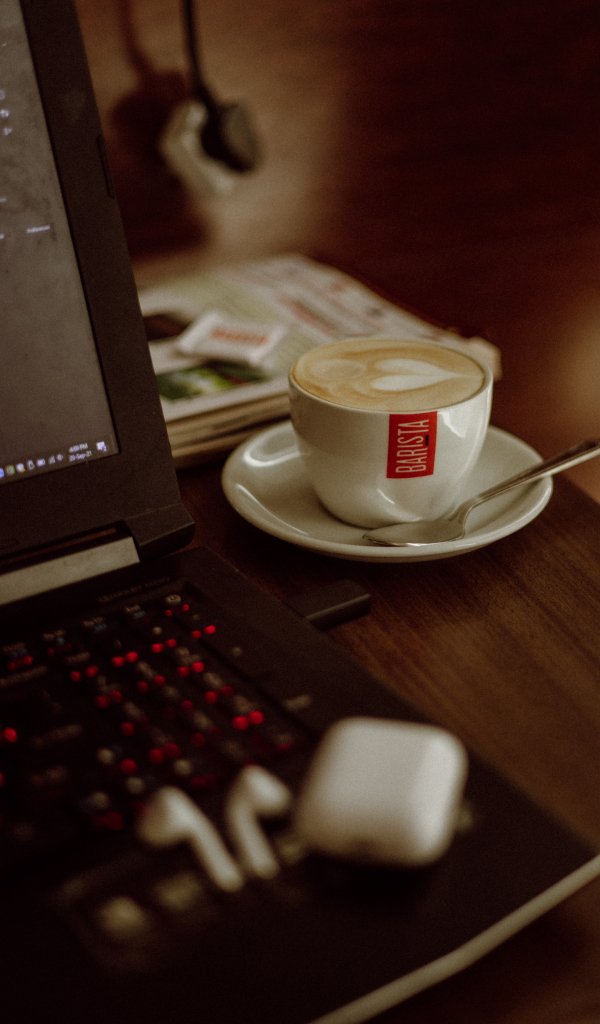 Wallpaper: cup of coffee, workplace - 600x1024