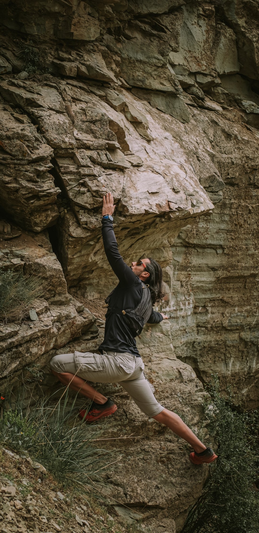 Wallpaper: rocks, mountains, sportsman - 1080x2220