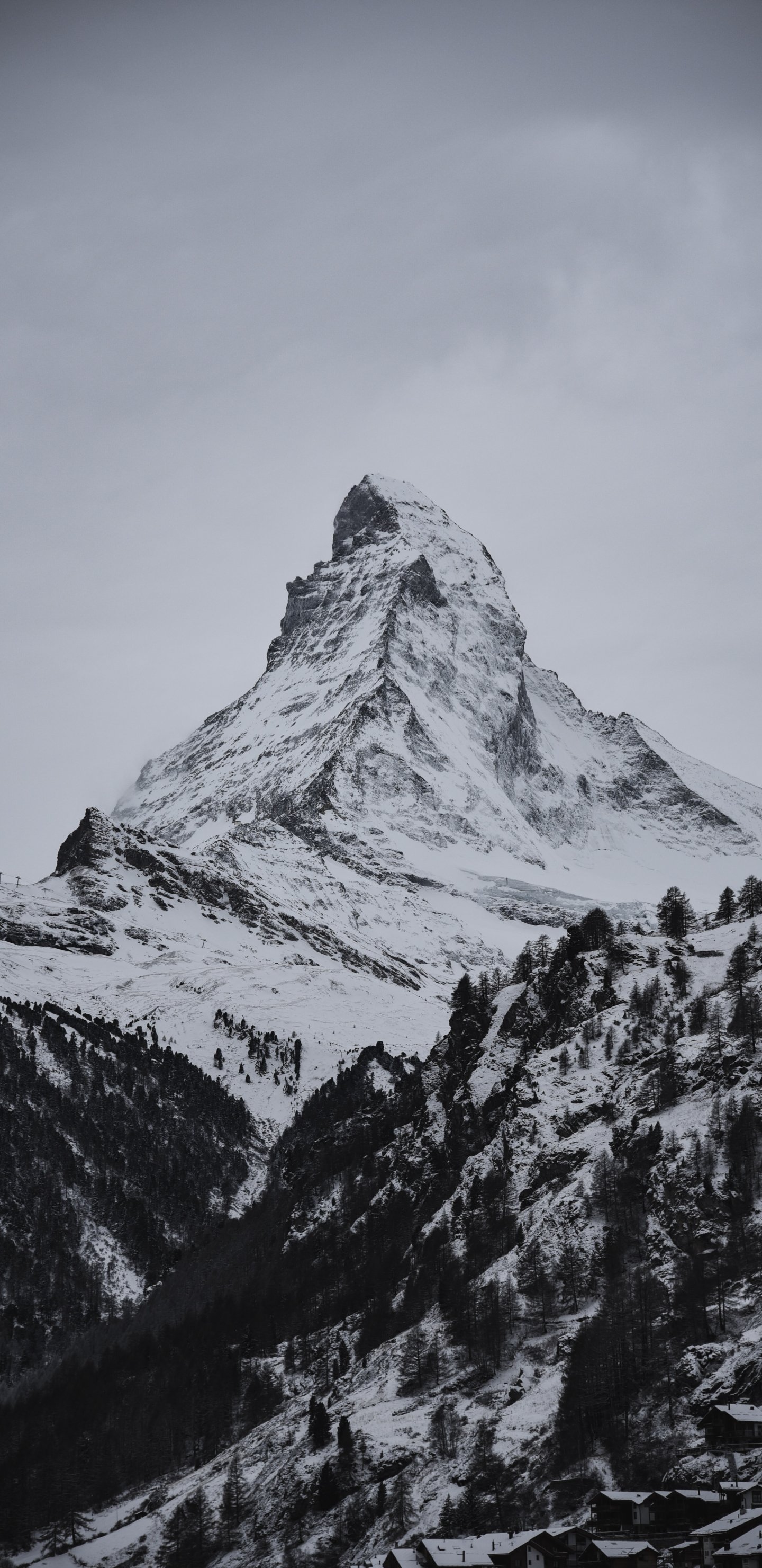 Wallpaper: snow mountain, forest - 1440x2960