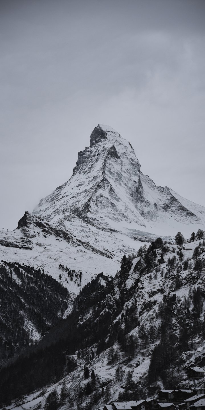 Wallpaper: snow mountain, forest - 720x1440
