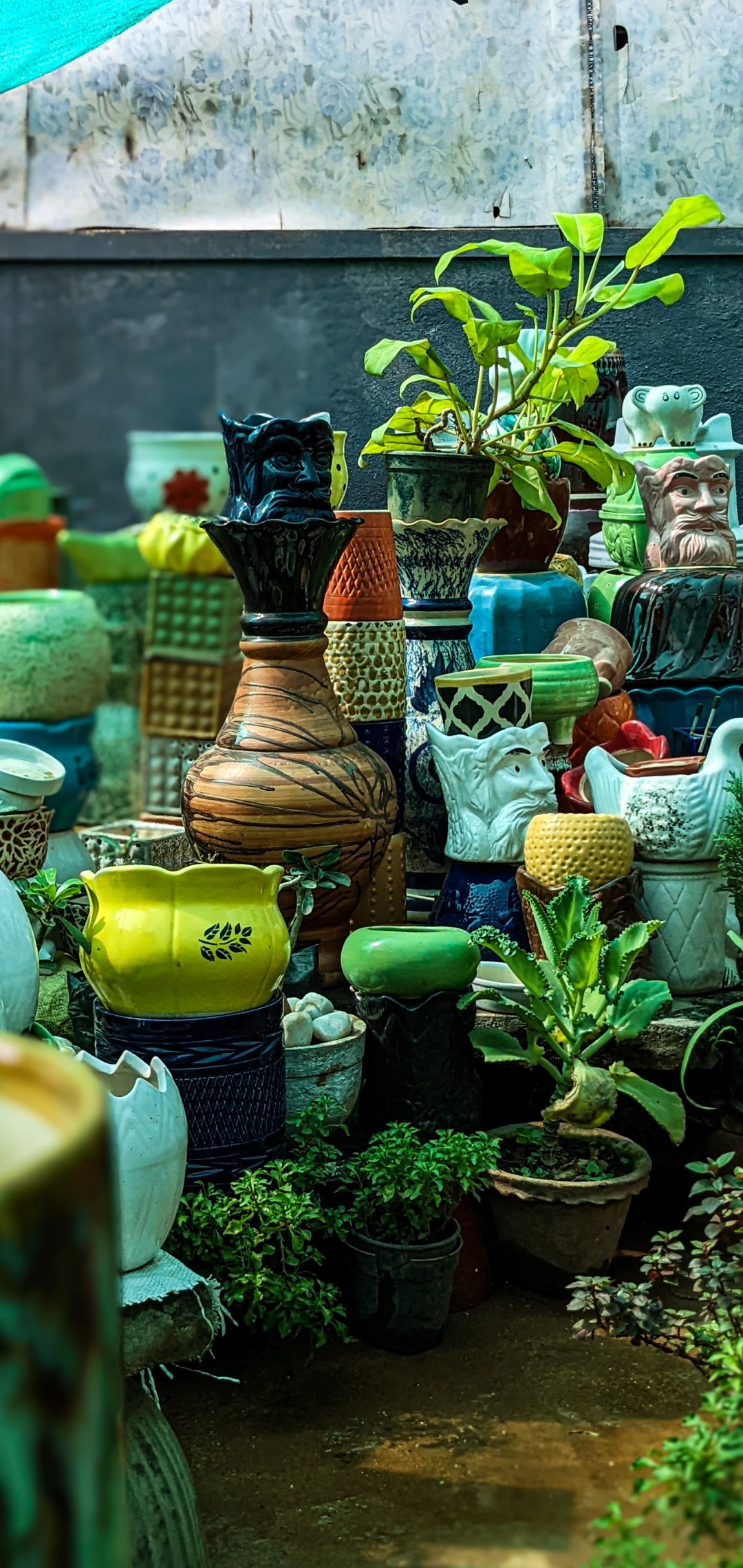 Wallpaper: Karnataka, India, flower pots - 1080x2280
