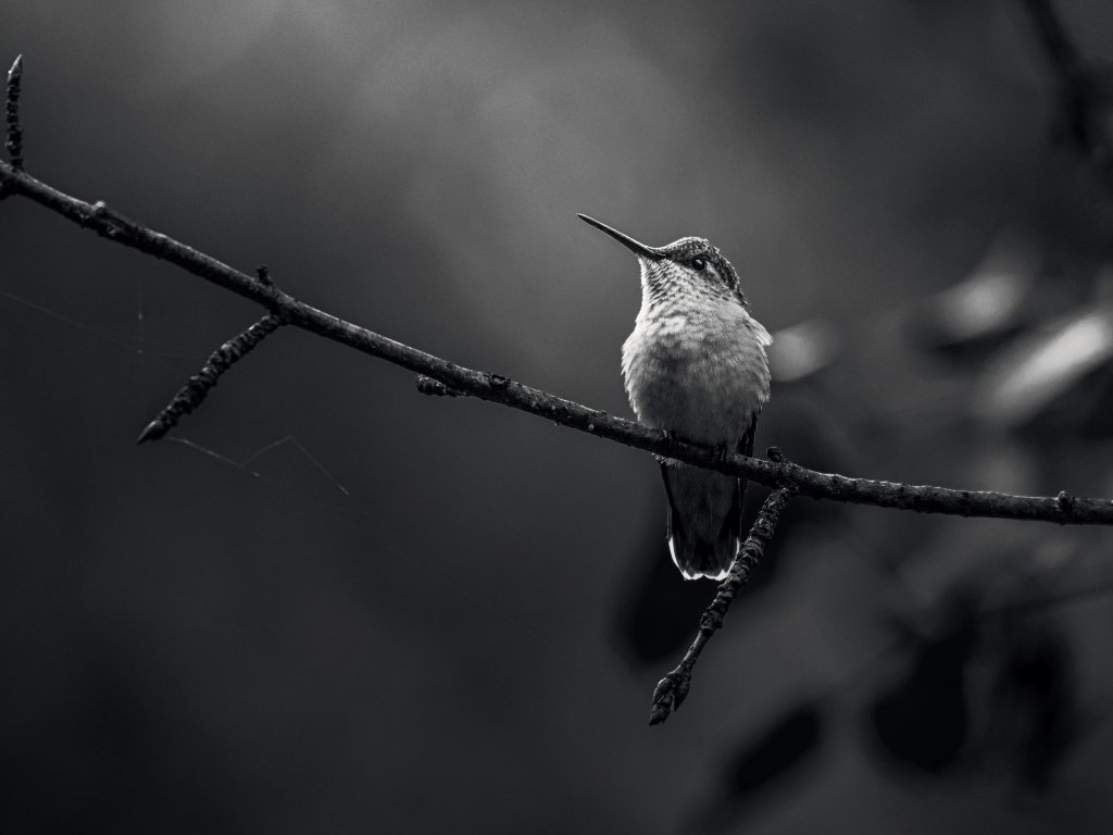 Wallpaper: hummingbirds, black and white photo - 1024x768