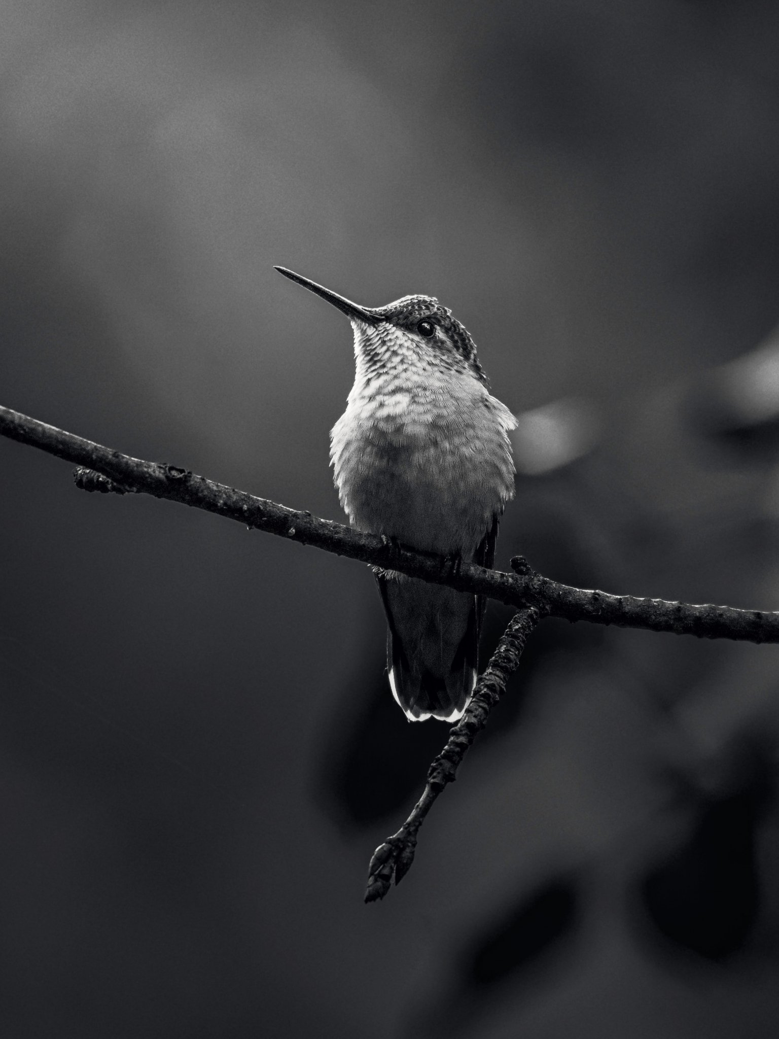 Wallpaper: hummingbirds, black and white photo - 1536x2048