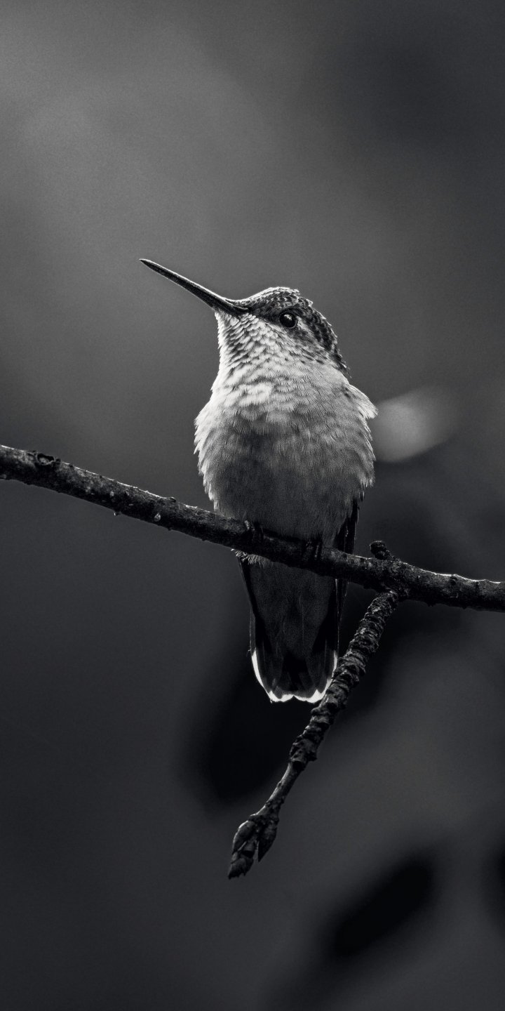 Wallpaper: hummingbirds, black and white photo - 720x1440