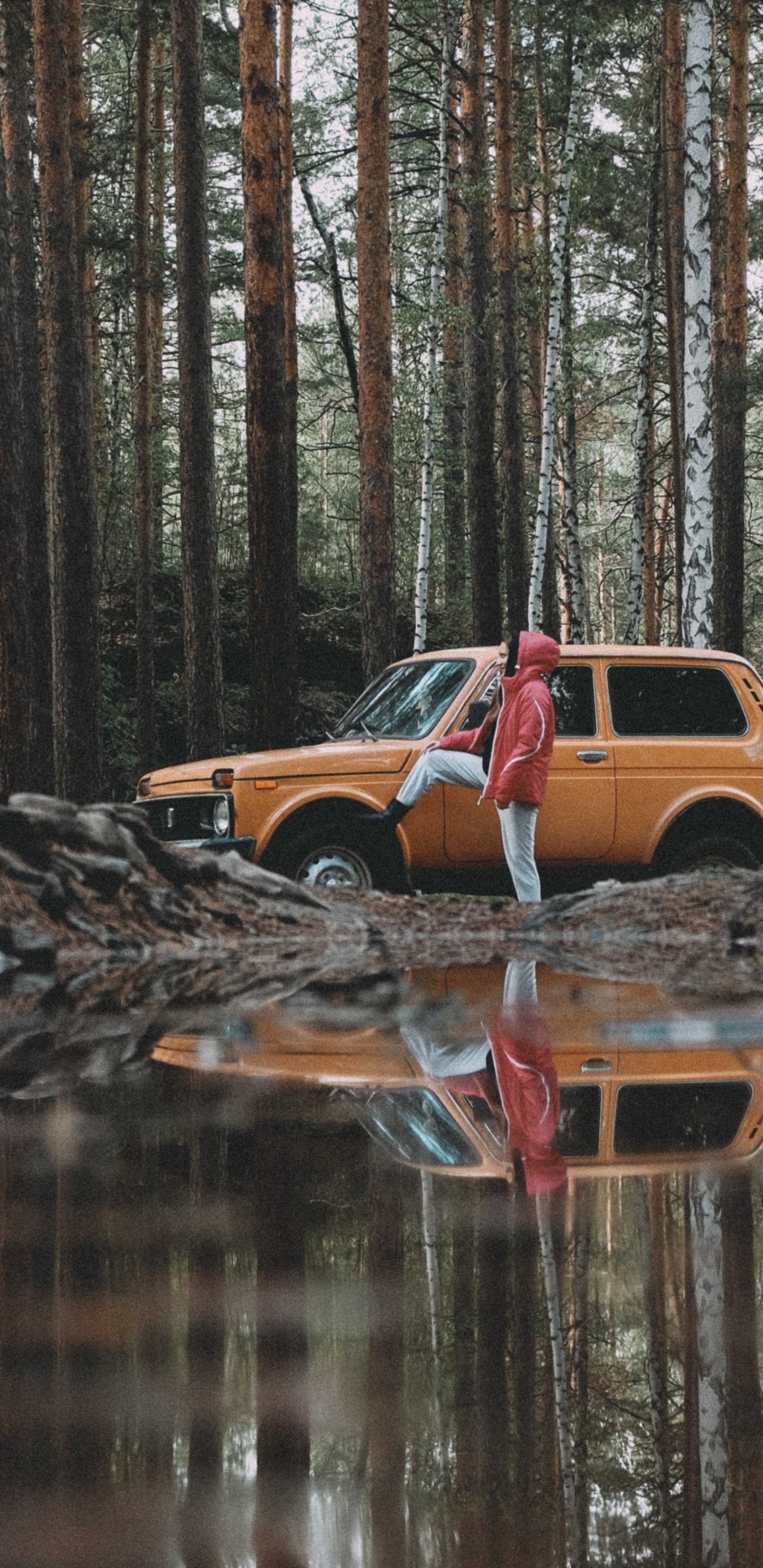 Wallpaper: in the woods, on machines - 1440x2960