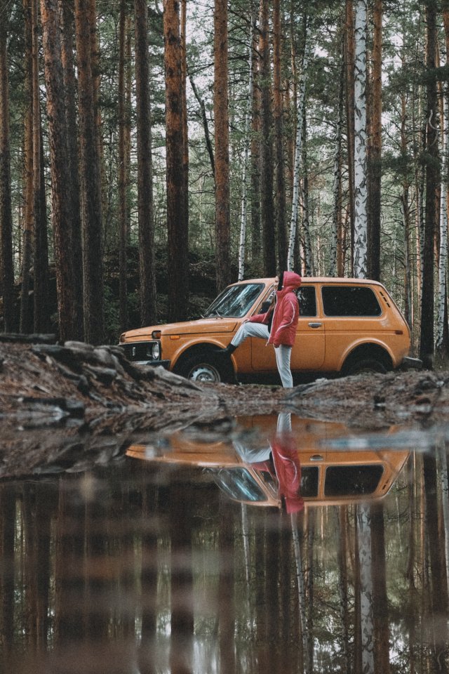 Wallpaper: in the woods, on machines - 640x960