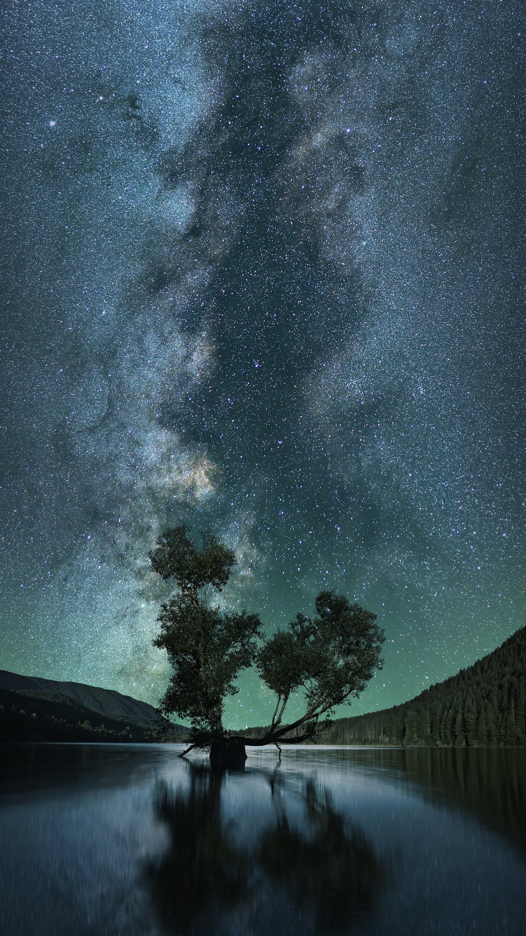 Wallpaper: starry sky, stars, lake - 1080x1920