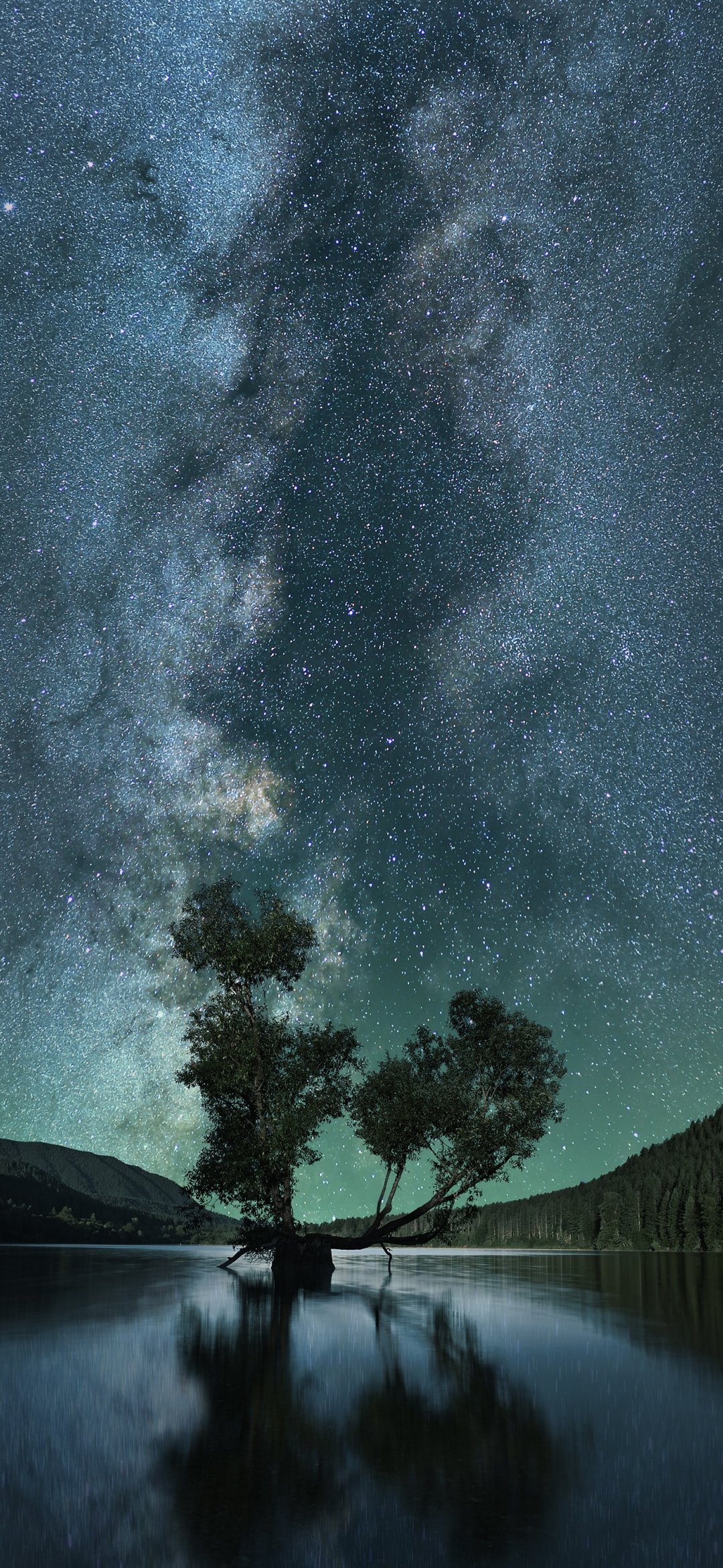 Wallpaper: starry sky, stars, lake - 1080x2340