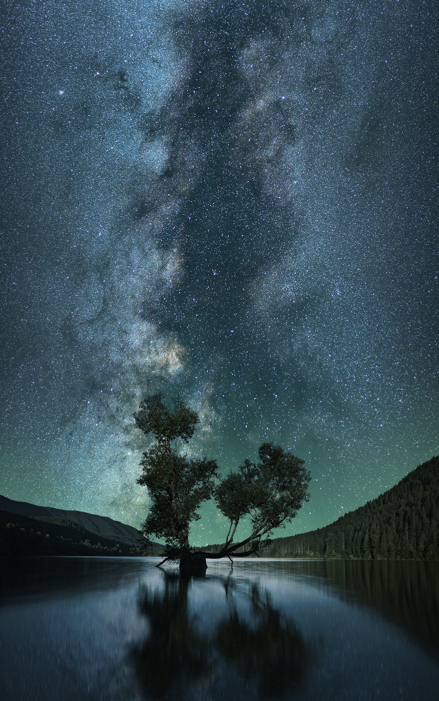 Wallpaper: starry sky, stars, lake - 1752x2800