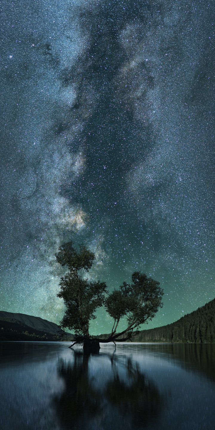 Wallpaper: starry sky, stars, lake - 720x1440