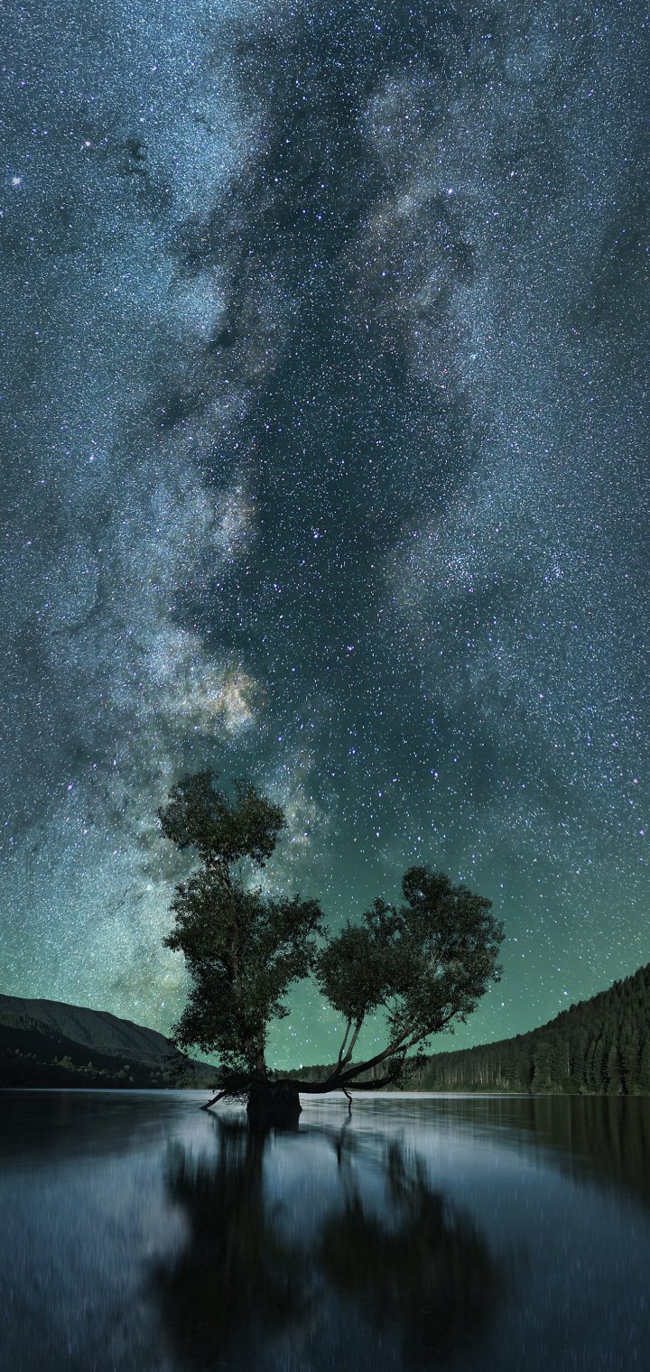 Wallpaper: starry sky, stars, lake - 720x1520