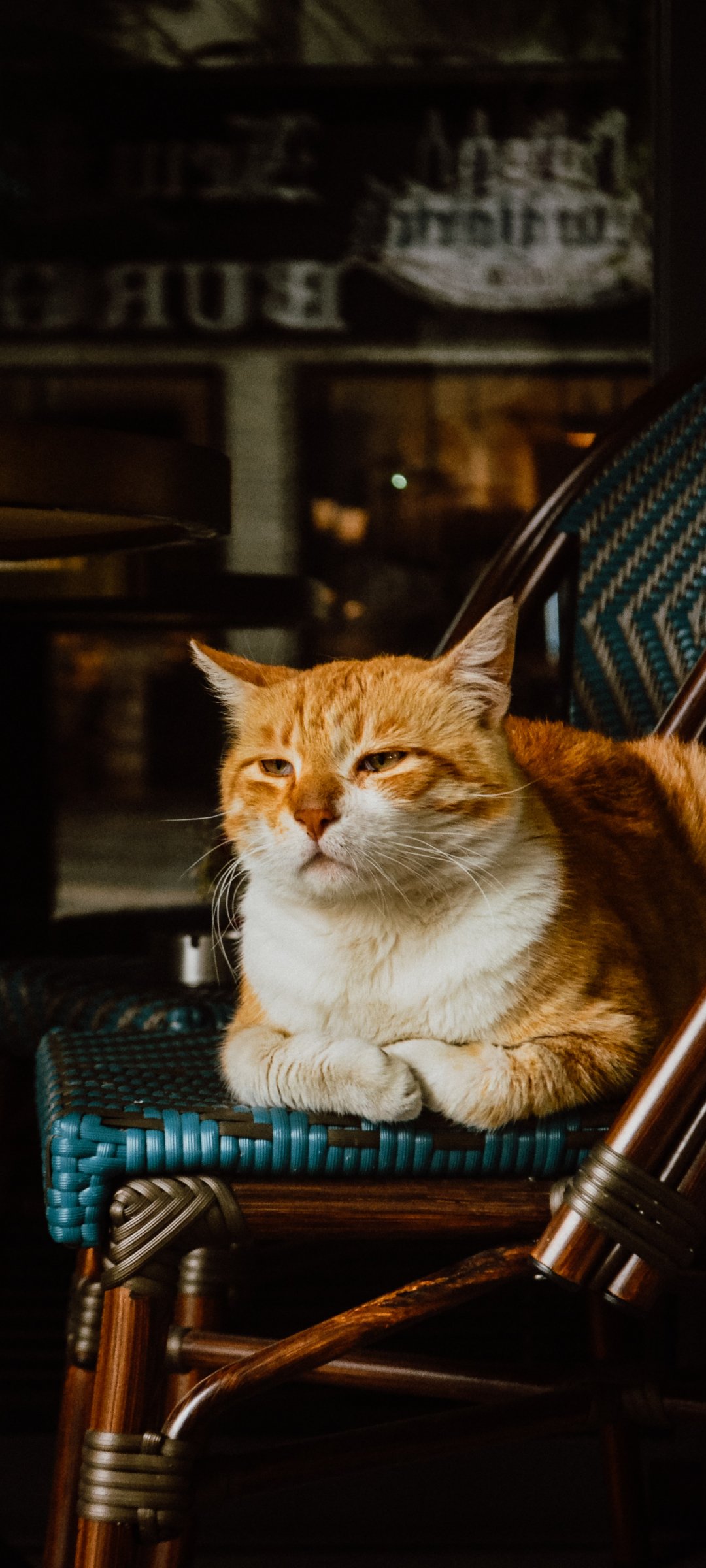 Wallpaper: cafe, cat - 1080x2400