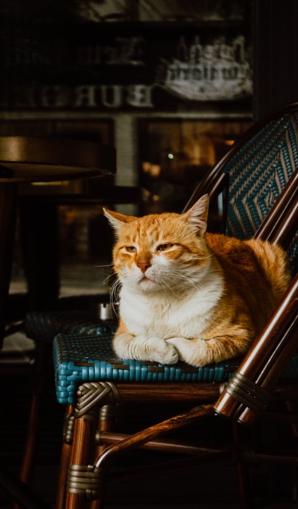 Wallpaper: cafe, cat - 600x1024