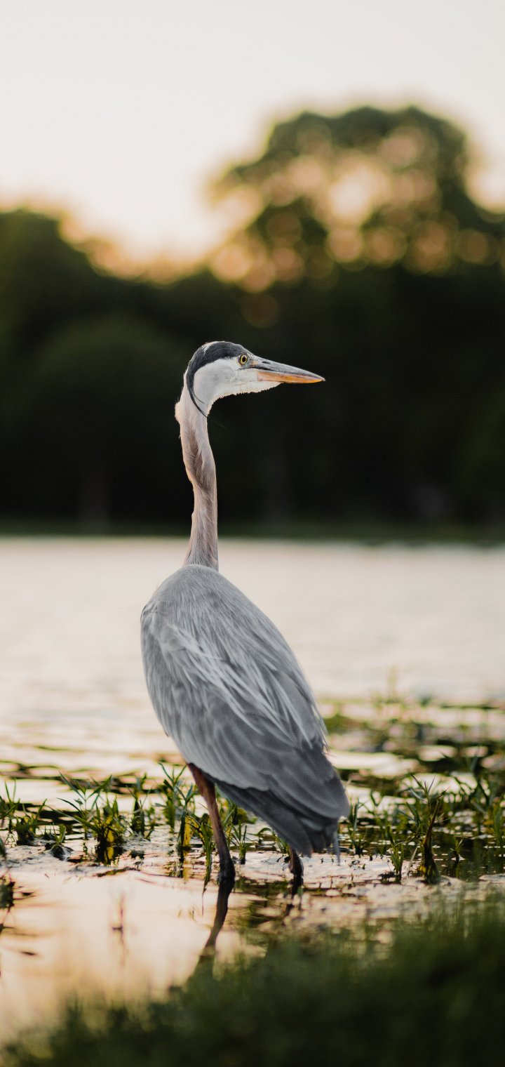 Wallpaper: heron, on the lake - 720x1520