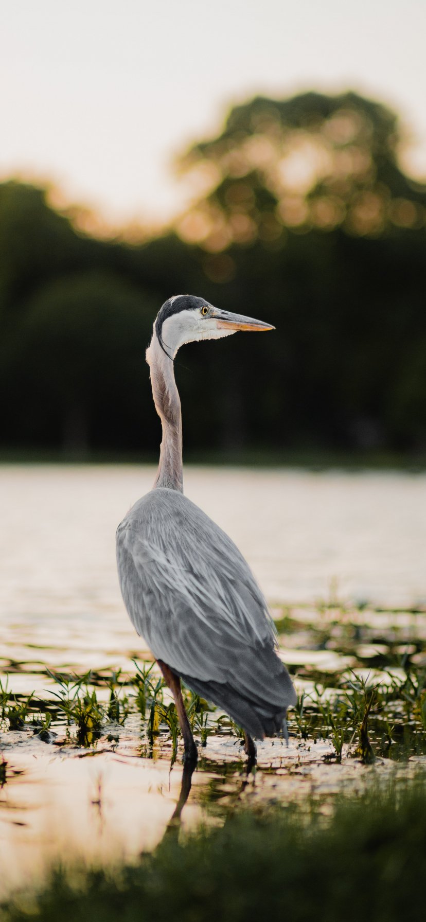 Wallpaper: heron, on the lake - 828x1792