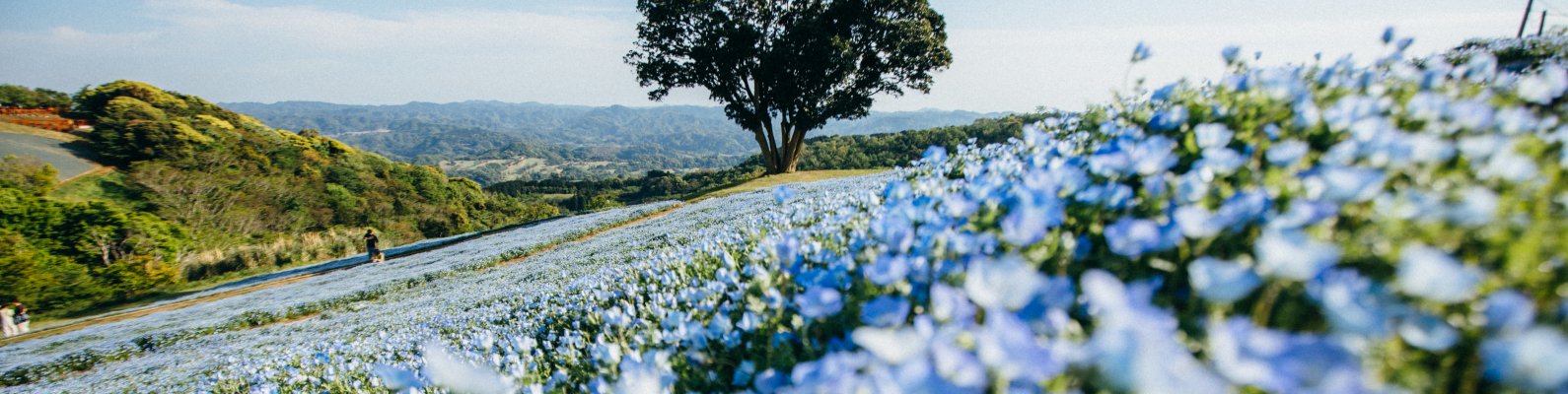 Wallpaper: flower field, tree - 1590x400