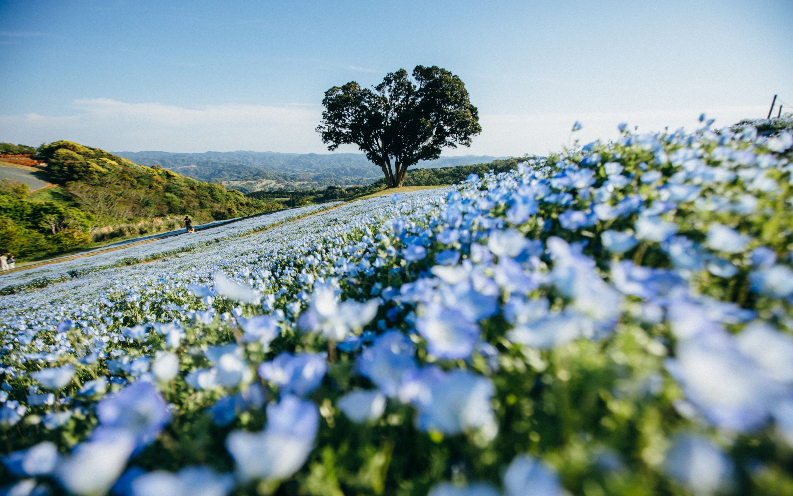 Wallpaper: flower field, tree - 2560x1600