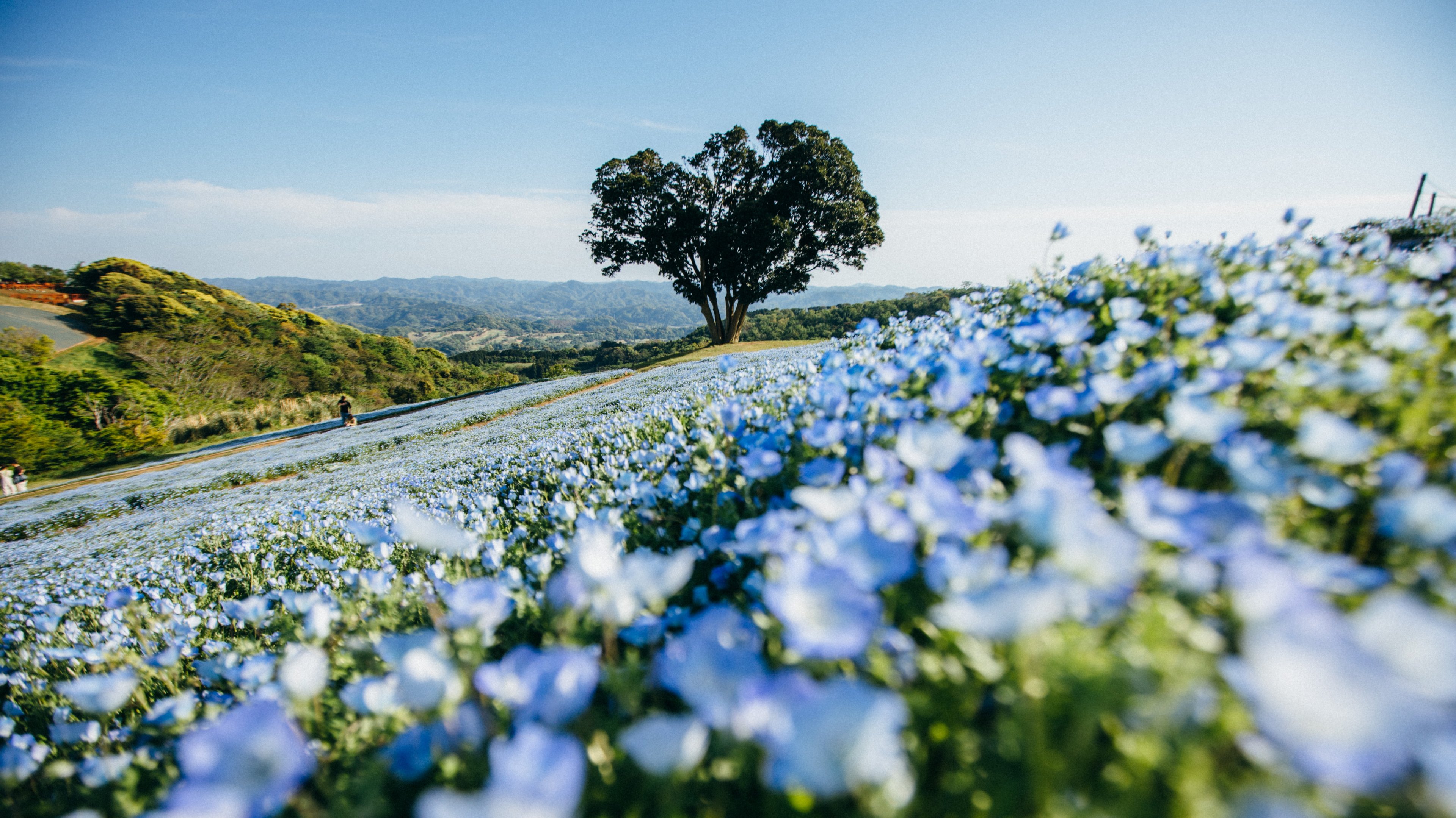 Wallpaper: flower field, tree - 3840x2160