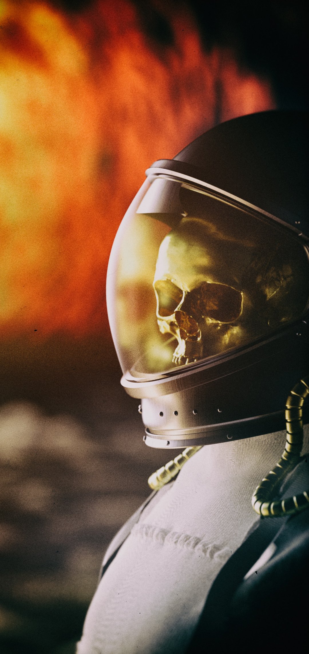 Wallpaper: astronaut, fire - 1080x2280