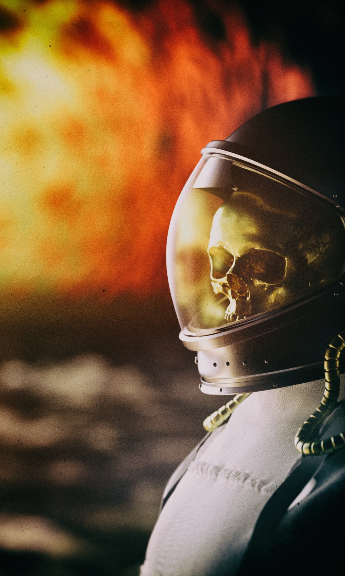 Wallpaper: astronaut, fire - 1200x2000