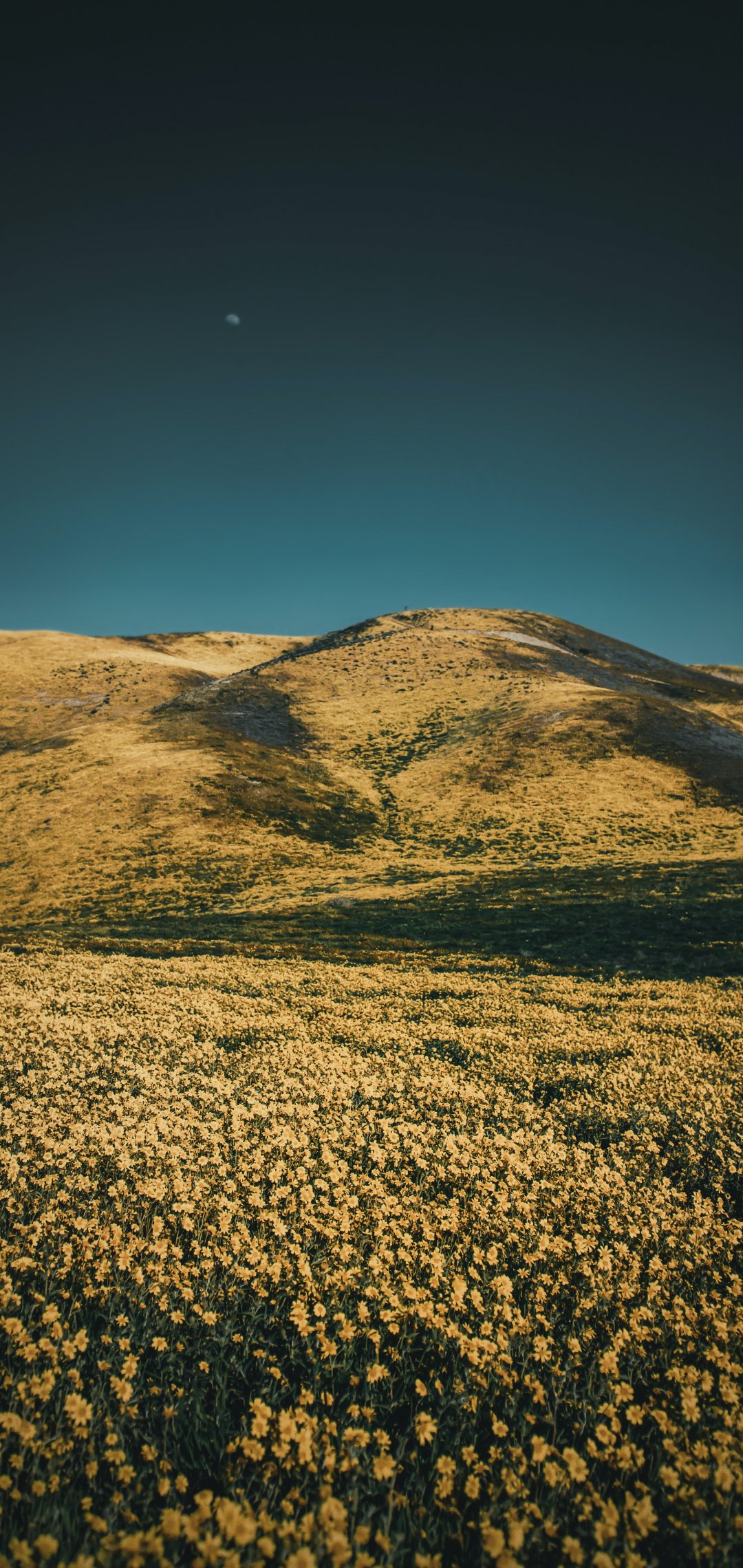 Wallpaper: flower field, hills - 1080x2280