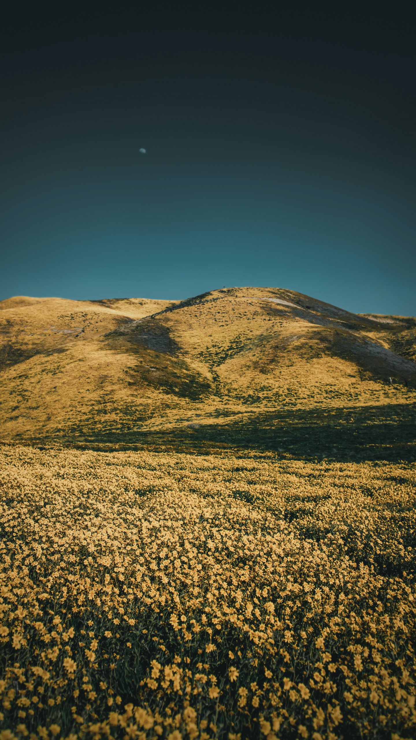 Wallpaper: flower field, hills - 1440x2560