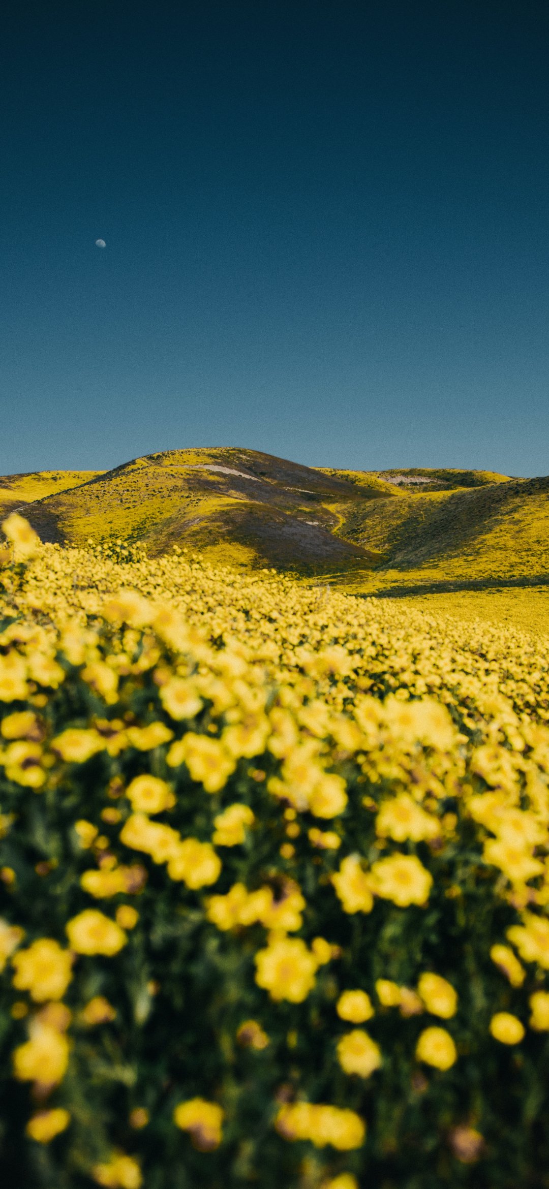 Wallpaper: flower field, hills - 1080x2340