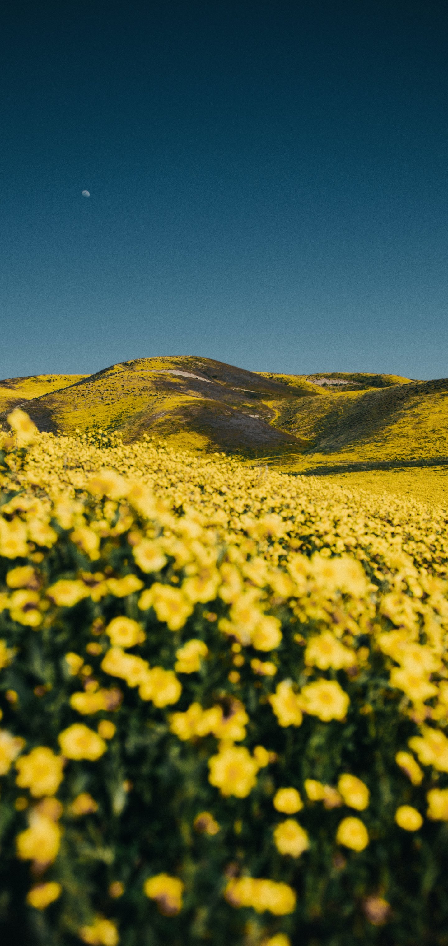 Wallpaper: flower field, hills - 1440x3040