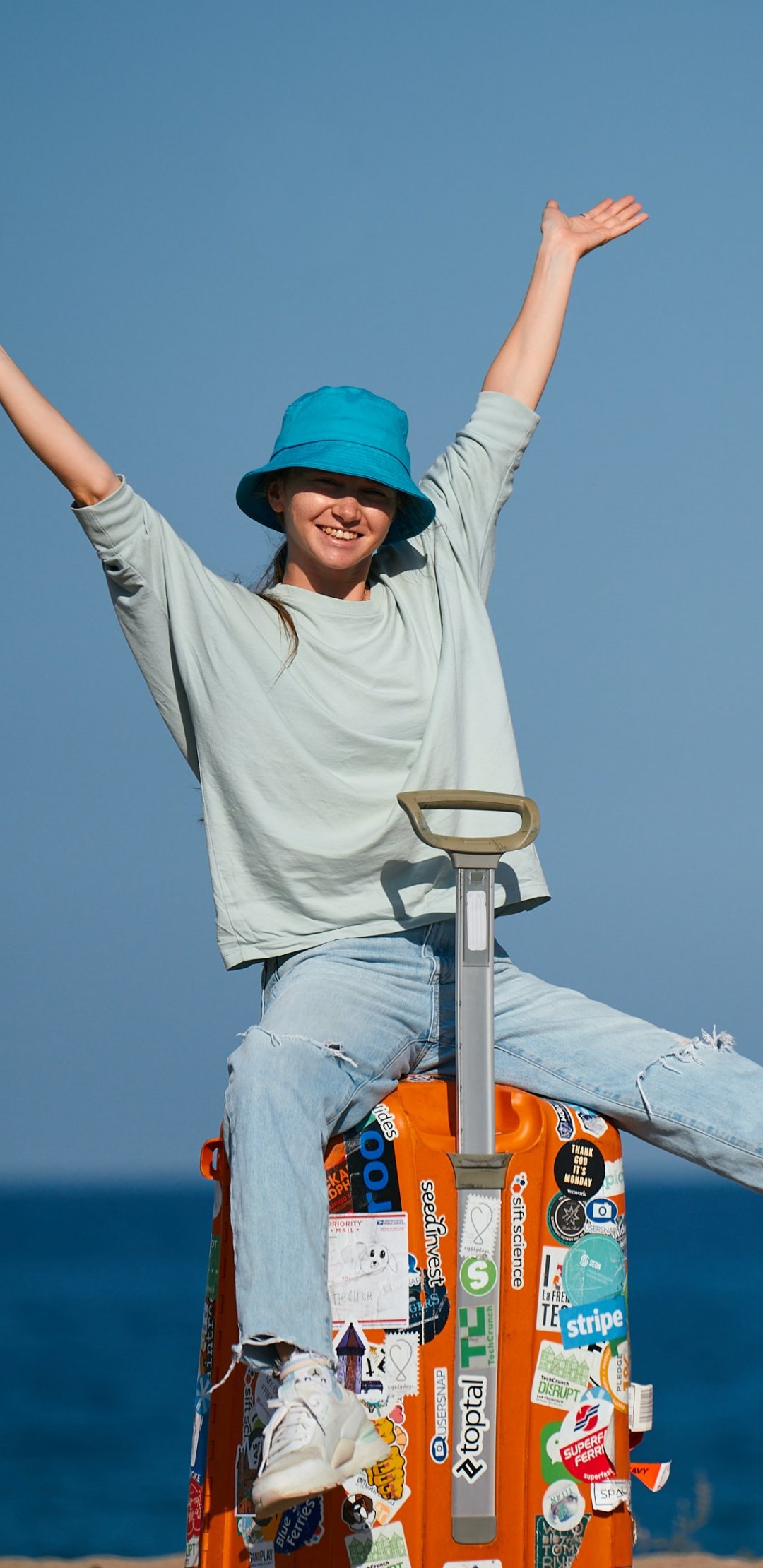 Wallpaper: girl on vacation - 1080x2220
