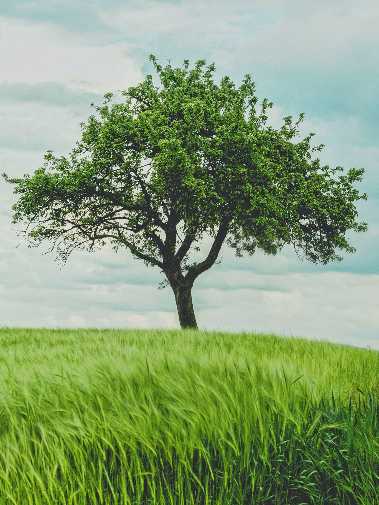 Wallpaper: tree, field, landscape - 1536x2048